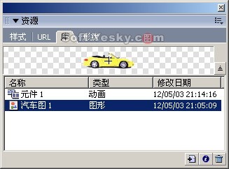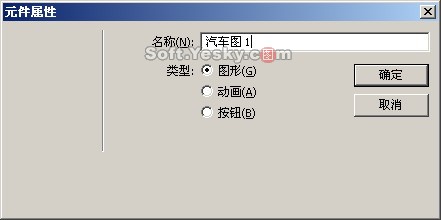 (2) 選中這幅汽車圖像,單擊【修改】菜單,選擇【元件】|【轉換為元件】,這時候會跳出元件屬性對話框,將這個圖形文件命名為"汽車圖 1",如圖2所示。