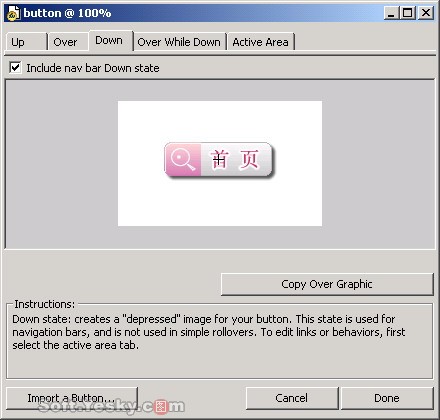 按鈕是網頁的重要組成元素之一,在網頁中發揮著十分重要的作用。它主要起著兩個作用:第一是起到提示性的作用,有提示性的文本或者圖形來告訴瀏覽者點擊后會有什么作用,這樣的按鈕可以是靜態的圖片,主要是讓瀏覽者了解點擊它起到什么作用,甚至可能僅僅是一個小的較為美觀的圖片。第二是動態響應的作用,即是指瀏覽者在進行不同的操作時,按鈕能夠呈現出不同的效果,響應不同的鼠標時間。今天我們就來介紹如何在中快速制作按鈕四狀態 。文章末尾提供原文件供大家下載參考。