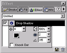4、按下ctrl+a全選場景中圖像,然后打開effect(效果)面板,在效果列表中選擇shadow and glow(陰影與發光)選項中的shadow(外陰影)命令對兩個圖像同時進行陰影設置。設置見圖3