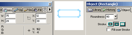 2、用圓角矩形工具畫一個矩形,大小隨意,在object面板中設置矩形的圓角度。