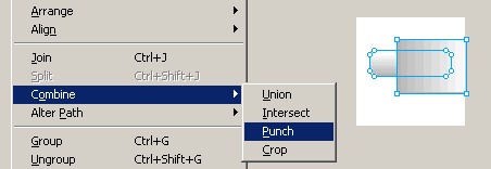5、現在把你設置好的這個矩形克隆一個(鍵盤快捷鍵ctrl+shift+d),再繪制一個矩形框,利用菜單命令“切割>>>打洞”進行切割: