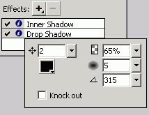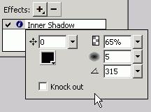 步驟二、增加內投影,在屬性面板的特效一域,點加號,選擇內部投影 (inner shadow) 參數和效果如下圖。