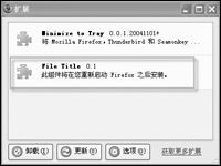 我們在用firefox保存網頁時,其默認的文件名均是“index”,這會使我們在存儲大量網頁時頗為不便,如果希望像ie那樣能夠根據當網頁的標題(tab)自動命名,暫時無法通過程序自身功能實現,需要安裝一個擴展“file title”,如圖所示。重新啟動程序后,即可使設置生效。