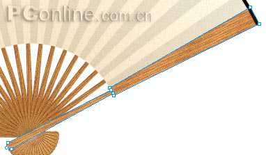 最后我們再來畫露在拆扇正面最右側的那支扇骨。我們用“細部”工具把最右側的那片扇面和扇骨同時選中,然后使用“修改—組合路徑—聯合”命令,聯合后的組合路徑會自動延用原來位于下層的扇骨的填充色和特效,如圖17。