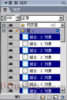 啟動“層”面板,從中可以吹劍忻白楹希?對象”的對象層都對應(yīng)著一個扇頁,我們在按住shift鍵不放的情況下,交錯著對這些扇頁進行逐一選取,如圖15。