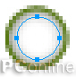 我們先來畫綠豆的臉,用“橢圓形"工具畫一個59*59大小的正圓,然后用“部分選擇"工具將該圓下端的節(jié)點選中后,用方向鍵向上移動7個像素。接著我們用“橢圓形"漸變對其進(jìn)行填充,漸變值由#9fec00至#81b31a,描邊色為#669506的2像素柔化描邊。如圖01。