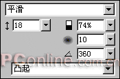 然后再為該對象添加“內(nèi)斜角"特效,各項設(shè)置參數(shù)如下。