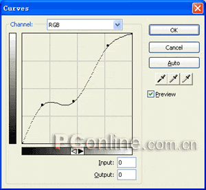9、好了,總體的步驟已經基本上結束了,但是目前五角星的晶瑩效果還不夠明顯,別急,我們還有關鍵的一步沒有做呢,執行effect -->adjust color -->curves效果命令,具體設置請參看下圖: