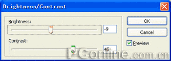 7、執行effect -->adjust color -->brightness/contrast效果命令,在彈出的設置框中按照下圖進行設置:
