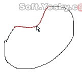 使用“重繪筆刷”沿著彎度重新畫一條弧線,重繪的路徑部分會以紅色高亮顯示,這樣,原來路徑就被新的路徑取代了。如圖2—36。
