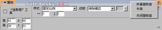 屬性面板:當選擇對像或選取工具的時候,其相關信息都會在屬性面板中顯示出來。同時也可以通過修改屬性面板中的數據或內容來調整圖像的相關屬性。例如圖像的大小、位置及色彩等等,如圖1—03。