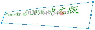 而當鼠標移到任意一個控制點的四個邊角附近時,指針會變為圓形箭頭,此時拖動該控制點進行移動,即可旋轉改變文字的方向,如圖5—07、5—08。此時改變縮放中心的位置所改變的則是旋轉點的中心位置。