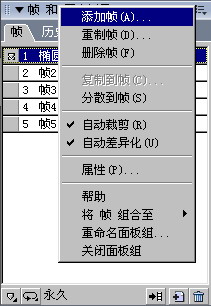 添加幀:點擊“幀和歷史記錄”組合面板右上角的下拉菜單,如圖6—07。