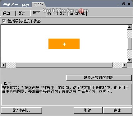 “按下時滑過”選項是設置按鈕在被按過之后鼠標再次滑到按鈕上時,按鈕所呈現的形狀。該項同樣是在選中“包括導航欄按下狀態”后才能生效。我們點擊“復制按下時的圖形”后,把上一幀的按鈕色彩改為黑色,以便區別。