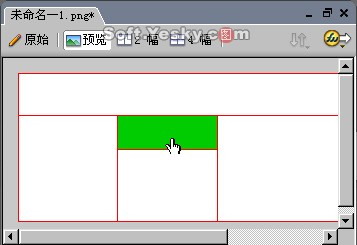 此時,按鈕的四個鼠標事件都有了,點擊“完成”按鈕后回到工作區中的“原始”選項窗中。我們可以點擊緊挨“原始”選項窗右邊的“預覽”窗(或按f12鍵啟動瀏覽器)查看測試剛制作的按鈕,如圖8—08。