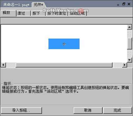 該窗口中前面的“釋放”、“滑過”、“按下”和“按下時滑過”是用來設置鼠標在觸及按鈕時,按鈕所呈現的四種狀態。而“活動區域”則用來設置按鈕在響應鼠標指針時的有效范圍。