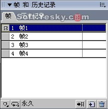 如果我們現在打開“幀”面板的話,就可以看到該面板下已自動為按鈕元件生成了四個幀,如圖8—03。但此時只有第1幀中有按鈕圖像,其它三幀均還沒有任何內容。
