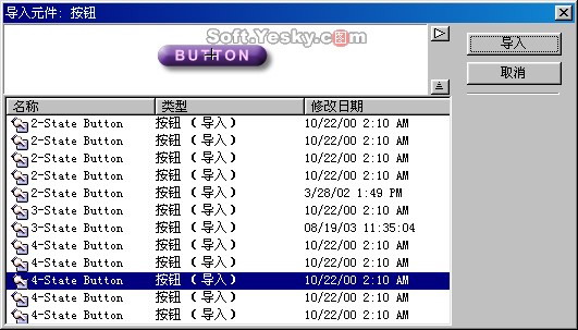 點擊“導入按鈕”則可以從的按鈕元件庫中直接選取一種按鈕進行導入,如圖8—04。