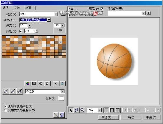 調色板——選擇圖像所使用的調色板。調色板中的顏色越少,圖像中的顏色也越少,輸出的圖像文件也就越小。