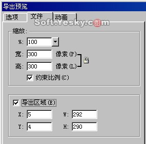 導出區域——選擇該項后可直接在x,y欄中輸入起始坐標,在w,h欄中輸入寬、高度。此時,在圖像的預覽區中,圖像四周會出現六個控制點,通過拖動這些控制點也可以設定圖像的導出區域。