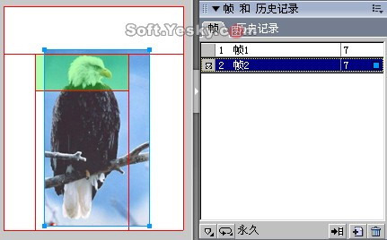 可以看到,不管你在第二幀中所導入的圖像有多大,在網頁瀏覽時也只能在相同的切片范圍內看到兩張圖形的變換效果。因此,這種圖象的變換又被稱為“相交變換”。