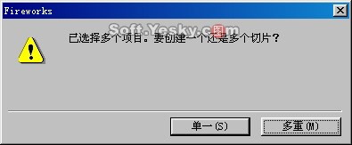 先在畫布上繪制或引入三個圖形對象,然后同時選中這些對象,并在任意一個對象上單擊右鍵,從彈出菜單中選擇“插入切片”。這時會彈出一個提示窗口,如圖9—07。