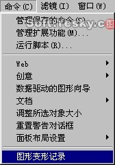 此時點擊菜單欄上的“命令” 菜單,就會在最后一項中看到“圖形變形記錄”的操作腳本命令已被保存其中。