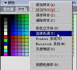 答:點擊菜單欄上的“窗口—樣本”啟動顏色樣本組合面板,點擊該面板右上角的下拉列表,可從中另選一種顏色樣本。
