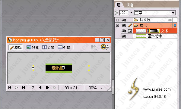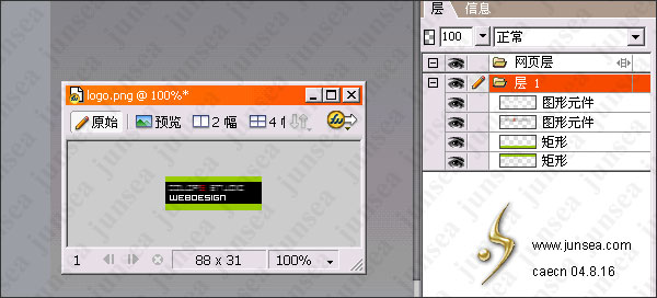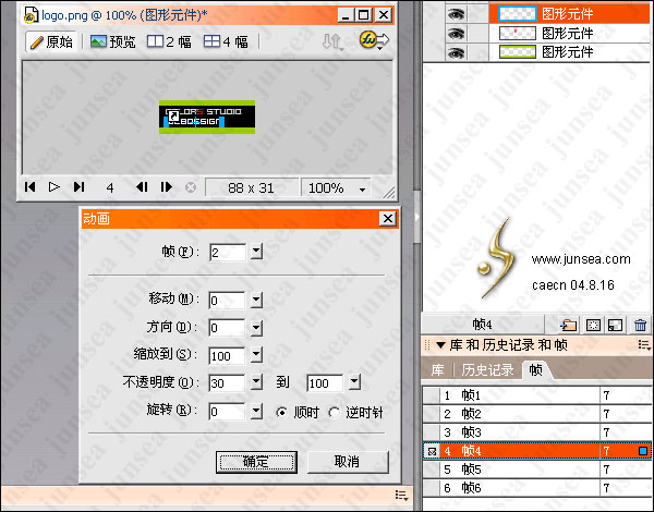 本例主要針對一個logo的漸隱效果做出仔細講解 本例涵蓋了fw所有的主要動畫技巧 對初學者來說可能有點難,但只要仔細揣摩,那么用fw做gif就可以完全掌握