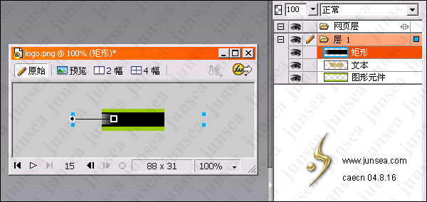 1,新建一個88*31的畫布,畫出如圖中的兩個條,并按f8轉換為元件.(圖1)