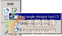 (2)點擊工具箱上的熱點工具,我們會看見如圖3所示的三類熱區工具,rectangle hotspot tool“矩形熱點”工具、circle hotspot tool “圓形熱點”工具和polygon hotspot tool “多邊形熱點”工具。下面就分別講講這三類熱區工具的使用。