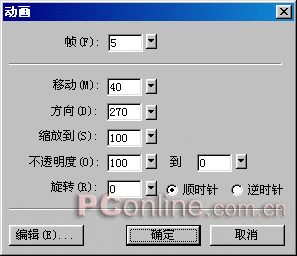 然后選中“汗滴”對象,再點擊“修改—動畫—選擇動畫”命令。此時會彈出一個動畫元件的設置窗口,我們在該窗口中輸入如圖25般的相關數值。