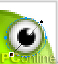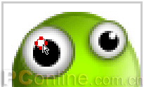 我們將該眼睛再復制一份(投影不要復制),然后用“縮放”工具將其拉伸至24*24大小,并移到綠豆臉部的左側中來。由于眼部位置的改變,也就使這一則的眼部高光位置發生改變,因此,我們可以用“部分選擇”工具對其進行適當的位置調整,如圖07。