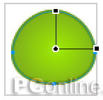 我們先來畫綠豆的臉,用“橢圓形”工具畫一個59*59大小的正圓,然后用“部分選擇”工具將該圓下端的節點選中后,用方向鍵向上移動7個像素。接著我們用“橢圓形”漸變對其進行填充,漸變值由#9fec00至#81b31a,描邊色為#669506的2像素柔化描邊。如圖01。