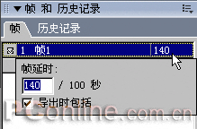 是否覺得動作太快了呢。我們在“幀”面板中將第一幀的延時時間設置為140/100秒。如圖19。