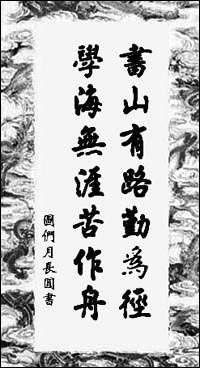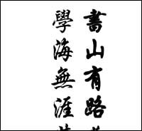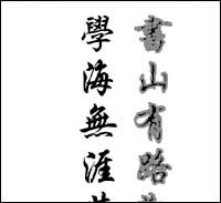 6. 為了更好地突出書法效果,使它們更像一幅完整的作品,我們還要對其裝裱一下。單擊菜單欄中的“文件→導入”命令,導入一幅背景圖,并將其至于后面,然后調整好文字對象與背景的位置關系,這樣整個作品就設計完成了,效果如圖6所示。