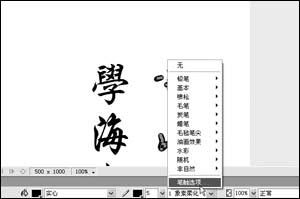 4. 設置筆觸顏色,打開“屬性”欄,在筆觸顏色框中將顏色設置為黑色,大小為5,然后單擊其后面筆觸選項(如圖3),打開筆觸選項對話框,設置參數為“鉛筆”,在其下方的下拉列表中選擇“1-像素柔化”。接著單擊下方的“高級”按鈕,打開編輯筆觸對話框,單擊形狀標簽,設置大小參數值為3,邊緣參數值為2,接著再單擊敏感度標簽,設置筆觸屬性為“大小”,影響區域中設置壓力為50,速度為10,最后單擊“確定”按鈕返回。這樣這一段文字對象的宣紙書法效果設置完畢了,大家可以對比一下兩段文字對象設置前后的效果(如圖4):設置前的文字對象看起來比較生硬,而設置后的文字對象就比較圓滑一些了。