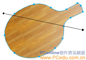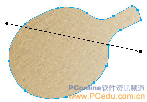 乒乓球拍多由膠合板做成,因此我們再來繪制上層的膠合板。將剛才復制出來的路徑對象再次進行復制,然后用方向鍵使其向左和向上各平移3個像素的距離。改用“木紋2”進行圖案填充,填充角度如圖03。