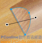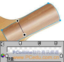 用“鋼筆”工具在拍握的下端構畫出一個如圖09般的小凹槽。為其使用“木紋2”的圖案填充,設置羽化值為1,并添加一個飽和度為-21,亮度為16的“色相/飽和度”特效,如圖09。