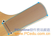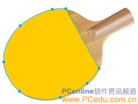 我們接著來畫球拍上的膠皮。將組成上層膠合板的一個路徑對象進行復制。然后對復制出來的對象進行路徑修改,使其外形如圖11般。采用填充色為# ffcc00的實心填充,然后用方向鍵使其向左和向上各平移1個像素的距離。