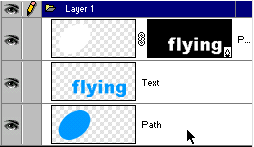 ![]() | 第四、 選中一個文字層, "edit-->cut" (快捷鍵 ctrl+x ),然后選中白色的橢圓,點選菜單項的 "edit-->paste as mask" ,效果是不是出來了?沒有?呵呵,你需要再調整一下各層的順序,看看左圖各層的排列,調整后,是不是已經(jīng)出現(xiàn)我們需要的效果圖了…… |