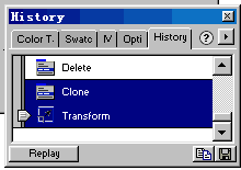 6、打開history面板,把最后二項clone&transform同時選中,按下面的replay按鈕,一直重復按這個按鈕![]() | |