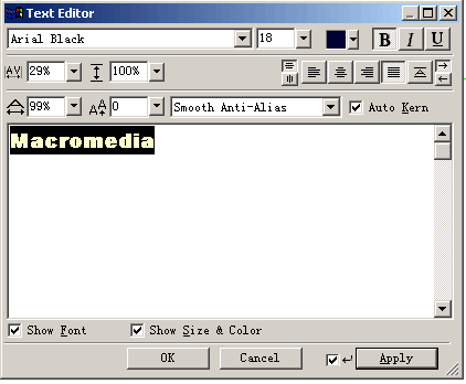 ![]() | 步驟三:將兩個文字對象分別環繞到上下半圓路徑上,使用attach to path命令或使用快捷鍵:ctrl+shift+y。注意:此時fireworks3這幾個文字是反轉的。 |