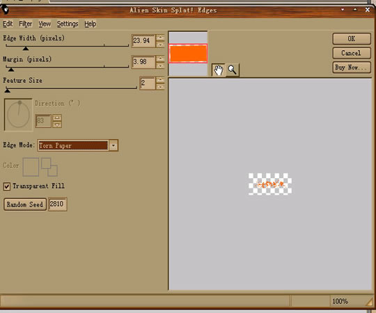 ①首先我們先畫一個寬73高25的矩形,顏色為(#ce3000)點效果→eye candy 4000→搖動效果。