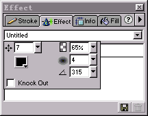 按鈕,這樣就將up狀態的按鈕內容全部復制到over狀態來了。9、接下來的操作就是我們制作按鈕按觸效果產生的關鍵了,選定位于上層的圓角矩形對象,打開effect(效果)面板,執行其中的“effect--shadow and glow--drop shadow”效果命令,在隨后彈出的陰影設置框內不需進行其余設定,保持其默認設置即可,如下圖所示: