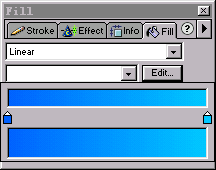 4、再次繪制出一個圓角矩形,注意在繪制時,寬和高都要小于上一步剛剛繪制的圓角矩形。填充的方式仍然為“linear(線性漸變)”填充,填充的方案需要改變,點擊edit按鈕,打開顏色編輯列,將填充顏色變為"#0064ff--#00ccff",當然,你也可以自己進行相關調整,具體的設置請看下圖: