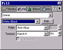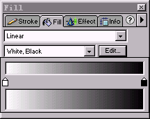 6、在選定文本對象的前提下,打開fill(填充)面板,點擊顏色填充方案右側的“edit”按鈕,在彈出的顏色編輯列上進行編輯。顏色列的顏色現在應該只有黑色和白色兩種顏色,而且均位于顏色列的兩端,如下圖所示: