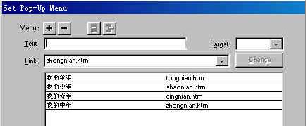 右擊“我的歷程”按鈕,選取add pop-up menu選項;然后右擊“我的歷程”,選擇“pop-up memu”于是調跳出一個新窗口,如圖3: