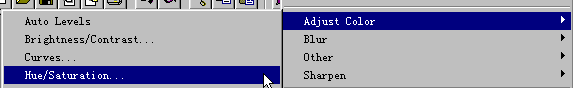 2.在畫布中選位圖圖形,選擇菜單xtras->adjust color->hue/salution(外掛->調整色彩->色調/飽和度).
