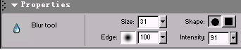 1、blur tool(模糊工具)。是用來模糊圖像的,通常我們想模糊圖像時總是第一感覺想到使用濾鏡,但是我們知道濾鏡的操作對象必須是整個位圖區(qū)域或者部分選擇區(qū)域,如此一來,就有很大的局限性了,使用blur tool便可以實現(xiàn)對操作對象的局部模糊,并且形狀可以自由支配,你需要做的就是在需要模糊的區(qū)域晃動你的鼠標即可了。在實際操作中,選定該工具后,相應的properties屬性面板會如下圖所示: